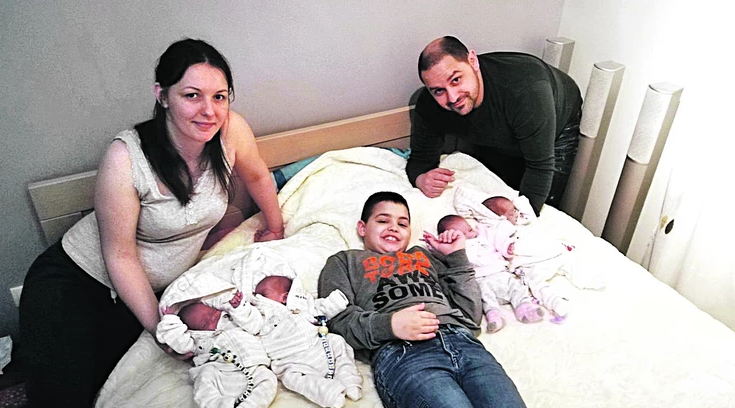 Roditelji Mira (29) i Mladen (39) Krstić, i njihov najstariji sin, osmogodišnji Vasilije, presrećni su što je porodica konačno na okupu. Da je lako sa četiri bebe, ne kriju – nije, ali ljubav i želja da što pre sustignu vršnjake i započnu bezbrižno detinjstvo jača je od svega.