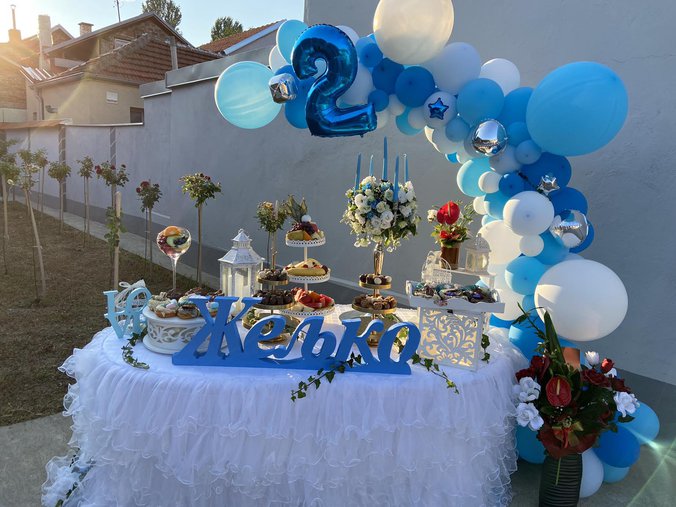 Naša ekipa je na licu mesta, a po dolasku u porodičnu kuću Kulića u dvorištu smo zatekli bogatu dekoraciju. U dvorištu je postavljena svečana trpeza, a svuda su baloni u plavoj boji. Takođe, u dvorištu je postavljen i specijalan slavljenički sto na kojem je Željkovo ime, kao i posebna dekoracija i svakojake gurmanske đakonije.