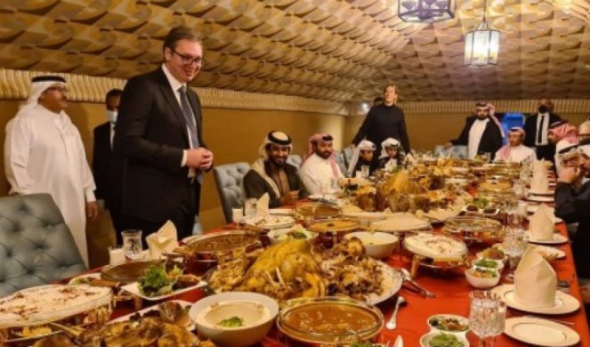 Predsednik Srbije Aleksandar Vučić je na instagram nalogu “budućnost Srbije” objavio fotografiju gozbe koja je pripremljena u njegovu čast tokom posete Bahreinu