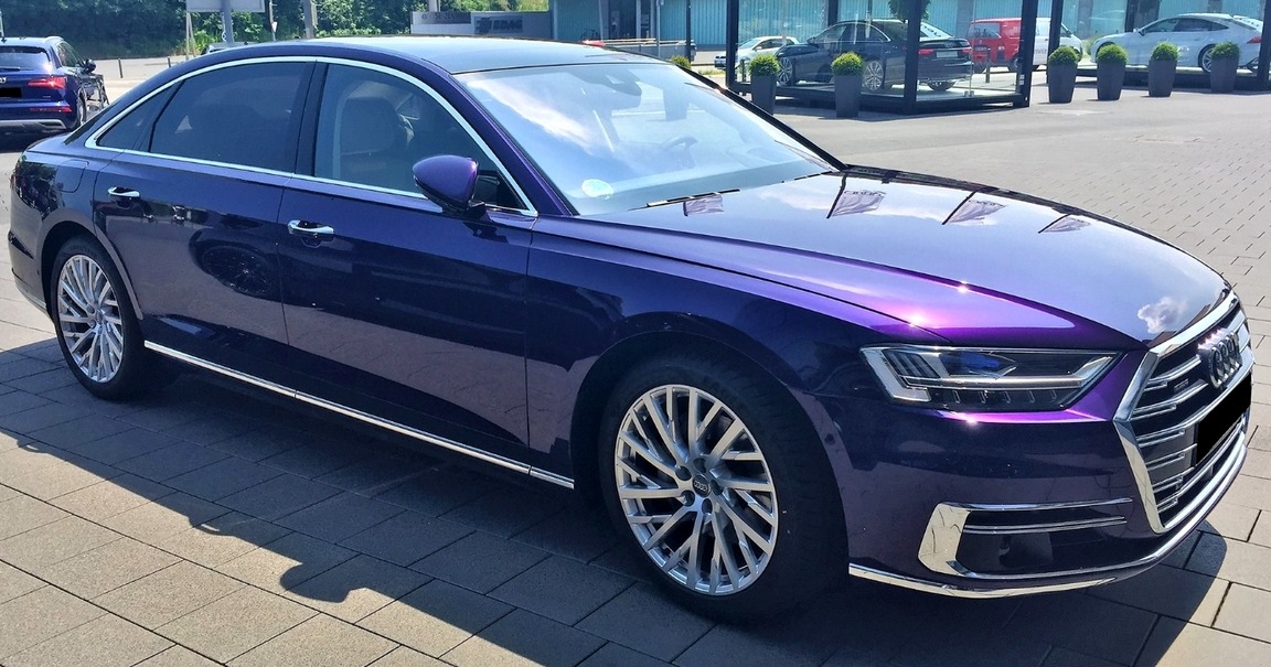 According to the Audi Forum in Neckarsulm, this A8L is the 50 TDI quattro version, which we all know is powered by a 3.0-liter V6 turbo-diesel unit, producing 286 PS (282 HP) and 600 Nm (443 lb-ft) of torque. It’s enough to send this 5.3 meter (17.3 ft) long two tonne (4,400 lbs) car from zero to 100 km/h (62 mph) in 5.9 seconds Source: https://www.autonews-mag.com/audi-passion/exclusive-audi-a8l-in-velvet-purple