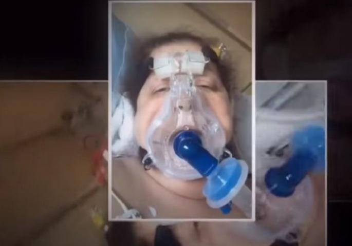 Sledećeg dana medicinska sestra snimila je sebe kako leži u bolničkom krevetu dišući uz pomoć nosne kanile.