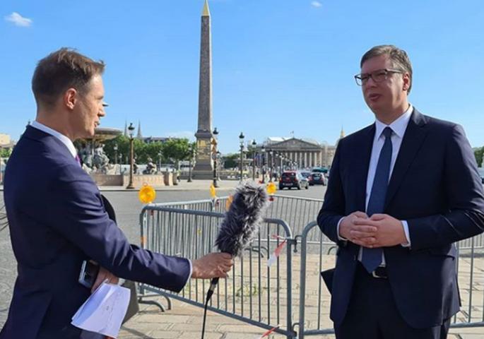 Predsednik Srbije, Aleksandar Vučić obraća se uživo građanima Srbije iz Pariza kako bi preneo utiske sa sastanka sa predsednikom Francuske, Emanuelom Makronom.