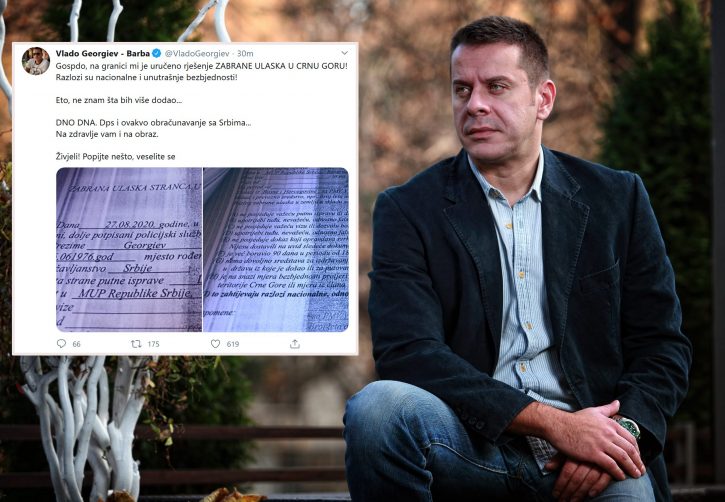 Koalicija “Mir je naša nacija” tvrdi da je kantautor Vlado Georgiev danas vraćen sa granice prilikom dolaska u Crnu Goru. Muzičar je ovu vest potvrdio podelivši fotografije na svom zvaničnom Tviter profilu.