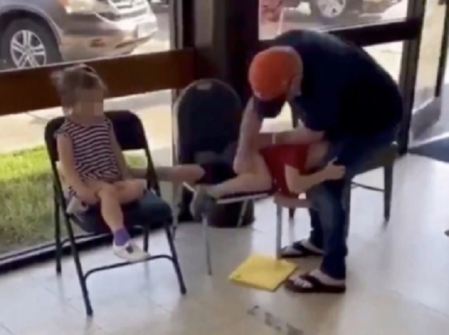 Na snimku se vide dvoje male dece i besni deda koji je unuka snažno izudarao nekoliko puta po zadnjici, dok je devojčici pripretio da ostane mirna.