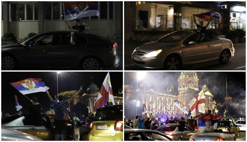 Nakon završetka glasanja u Crnoj Gori i proglašenja preliminarnih izbornih rezultata, u centru Beograda okupio se veći broj građana koji nosi srpske i crnogorske zastave.