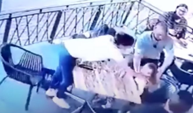 Kako pokazuje snimak nadzorne kamere, dve žene su sa devojčicom (4) sedele za stolom kada se odjednom pojavio muškarac koji je preskočio ogradu i zgrabio dete za vrat.