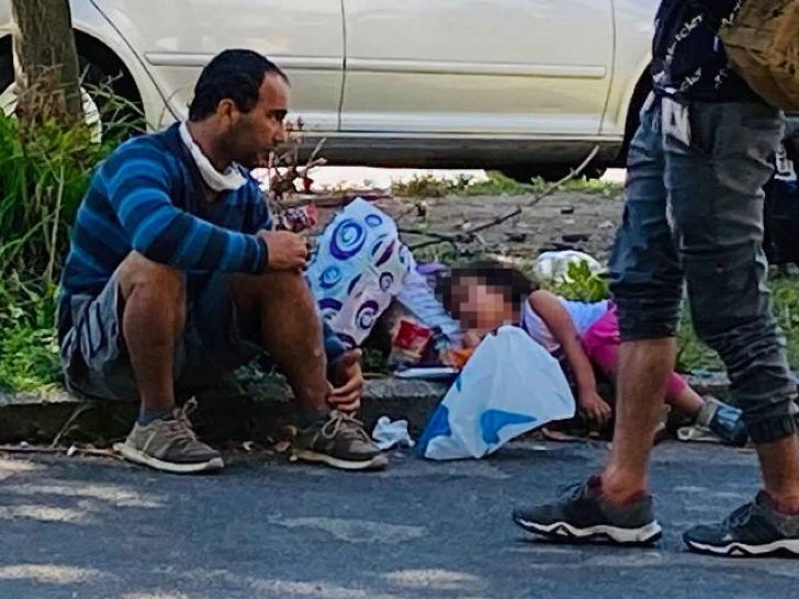 Na fotografijama je muškarac u kasnim tridesetim sa djevojčicom koja spava na trotoaru na ulici, pretpostavlja se od umora nastalog uslijed pređenih kilometara.