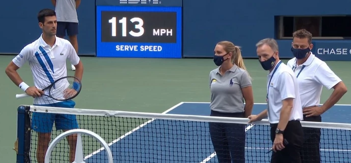– U skladu sa Gren slem pravilnikom, prateći radnju namernog udaranja lopte na opasan ili nesmotren način na terenu ili udaranja lopte sa nemarnim zanemarivanjem posledica, sudija US Opena je odlučio da diskvalifikuje Novaka Đokovića.