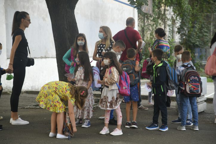 Maske na licima dece su šarene, jednobojne, najrazličitije, ali se ispod njih naziru osmesi – sreća što su ponovo sreli drugare.