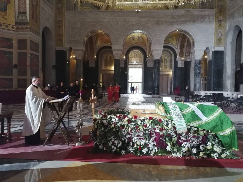KOVČEG sa telom blaženopočivšeg patrijarha Irineja položen je na postamentu od cveća u Hramu Svetog Save.