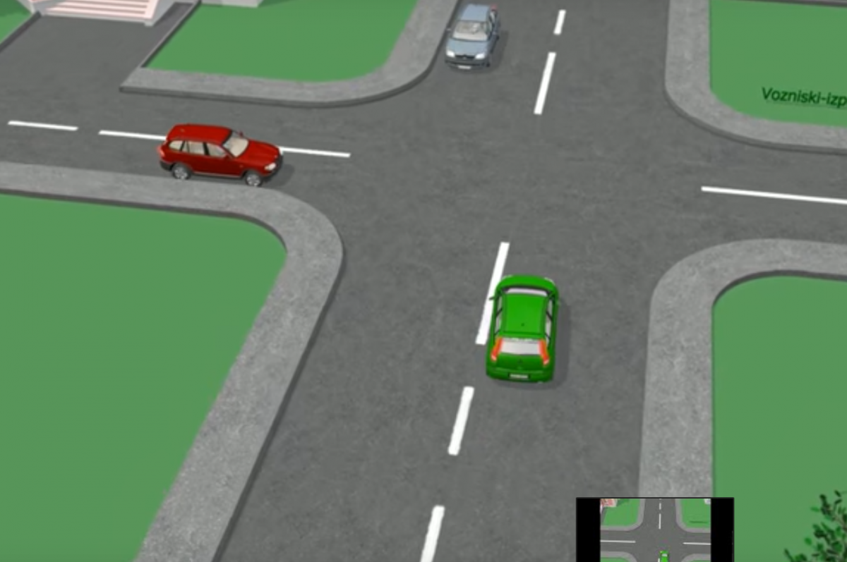 Na priloženoj slici nalazi se uobičajena situacija iz saobraćaja na kakve vozači svakodnevno nailaze. Tri automobila, bez saobraćajnih znakova, semafora ili policajca koji reguliše saobraćaj.