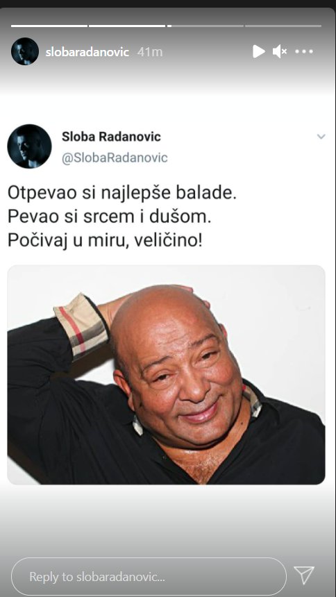 Otpevao si najlepše balade. Pevao si srcem i dušom. Počivaj u miru, veličino – napisao je pevač Sloba Radanović.