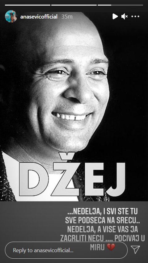 Nedelja, a više vas ja zagrliti neću… Upravo sam saznala da je zauvek prestalo da kuca veliko srce našeg Džeja. Baš u nedelju. Daleko negde sad, na put bez povratka, naš sin se spremio i otišao. Nek ti je blistav i svetao taj put, dragi kolega. I neka ti je laka zemlja i večnost. Iskreno saučešće porodici, prijateljima i svima koji su ga voleli. Ana i Milutin – napisala je pevačica.