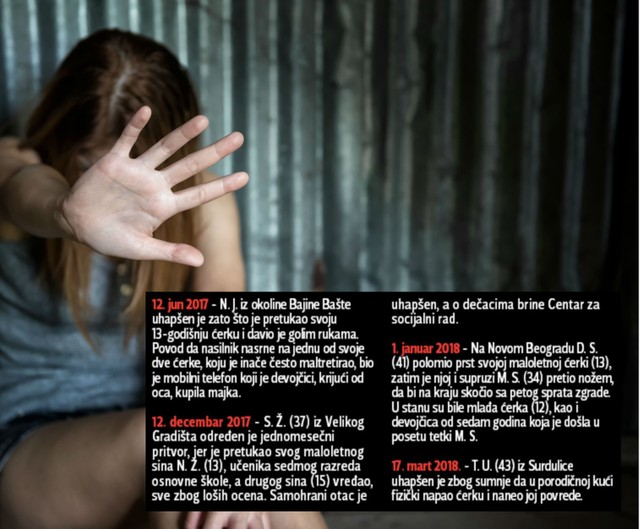 Kako “Blic” saznaje sve se dešavalo u sredu 16. maja uveče u porodičnoj kući u jednom selu kraj Beograda. Osumnjičeni je oko 21 čas ušao u sobu ćerke (13), koja se nalazi na spratu porodične kuće, i zatekao je da puši. U piksili su bili opušci cigareta. Besno ju je pozvao da siđe u sa njim u prizemlje kuće. Čim su sišli počeo je da joj udara šamare dok dete nije palo na pod. Kada je devojčica pala, njen otac je odmah nastavio da je šutira nogom u glavi i po telu. Dete je počelo da krvari iz usta i nosa. Njenog oca to nije zaustavilo već je neko vreme nastavio da je šutira. Kada je prestao da je udara nogama, devojčica se zbog bolova teško popela uz stepenice do svoje sobe, gde se sklonila. Međutim, tu nije bio kraj maltretiranju. Otac ju je besno i preteći ponovo pozvao da siđe. Kada je preplašeno i krvavo dete sišlo, njen otac je uzeo mašinicu za šišanje i ošišao je na kratko.